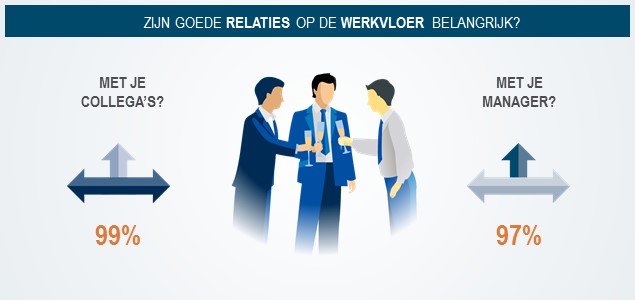Maar hoe we met collega´s omgaan tijdens en na het werk, is ook belangrijk voor ons welbevinden: 89% van alle ondervraagden in Nederland zegt dat positieve relaties op het werk belangrijk zijn, dus het is duidelijk een onderwerp dat werknemers aan het hart gaat.
